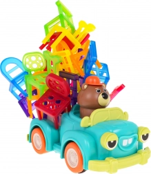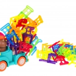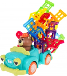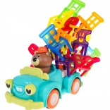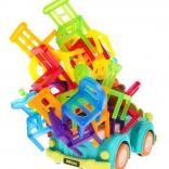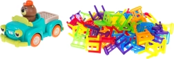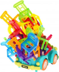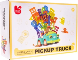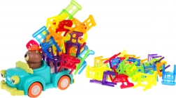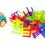 Hra zručnosti Skladacie stoličky a auto je ideálna pre deti od 3 rokov. Skladá sa zo 48 farebných stoličiek rôznych tvarov a auta, ktoré jazdí po kruhu. Vašou úlohou je postaviť vežu zo stoličiek na pohybujúcom sa autíčku. Tento úlohu zlepší koordináciu medzi rukou a okom a zvýši presnosť. Autíčko môže meniť priemer otáčania medzi 40 cm a 120 cm pomocou kolieska v spodnej časti vozidla.