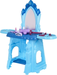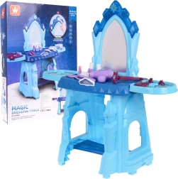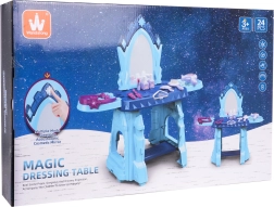 Táto kúzelná toaletka s motívom ľadového zámku prináša deťom nekonečné možnosti kreatívneho hrania. Je vybavená veľkým zrkadlom, nad ktorým sa nachádza hviezdicové tlačidlo, ktoré po stlačení aktivuje efekty svetla a zvuku.