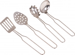 Tento skvele spracovaný detský kuchynský set je ideálny pre malých kuchárov a kuchárky. Odolný kov zaisťuje dlhú životnosť a realistický vzhľad, ktorý deti milujú. Sada okrem riadov obsahuje aj praktické kuchynské doplnky potrebné pre každú detskú kuchyňu.