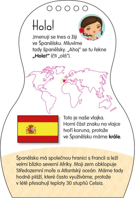 Kniha Obliekame španielske bábiky INES prepája tvorenie, hru a spoznávanie sveta. Malí výtvarníci si môžu vyfarbovať šaty a doplnky inšpirované španielskou módou a zároveň objavovať zvyky, tradície a každodenný život detí v Španielsku. Vďaka samolepkám ľahko vytvárajú vlastné modely, kombinujú štýly a rozvíjajú fantáziu.