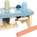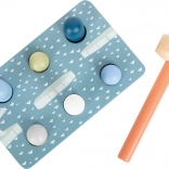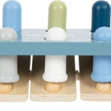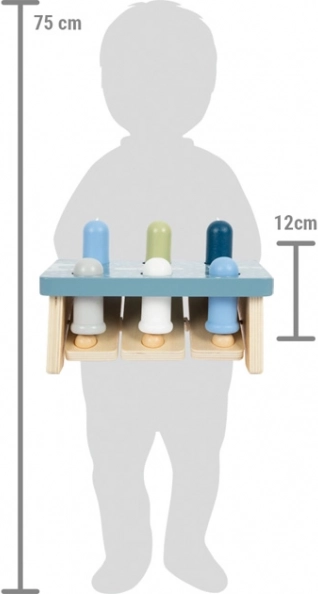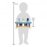 Zatĺčením jedného kolíka sa druhý na opačnej strane vysunie nahor. Deti si tak hravou formou osvojujú princípy príčiny a následku a udržia si pozornosť dlhšie.