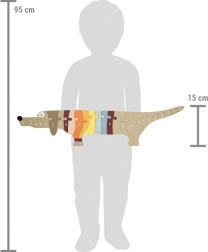 Každý dielik nesie písmeno A–Z, takže sa deti učia správne poradie abecedy pri skladaní roztomilého jazvečíka.