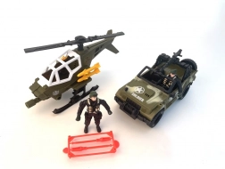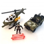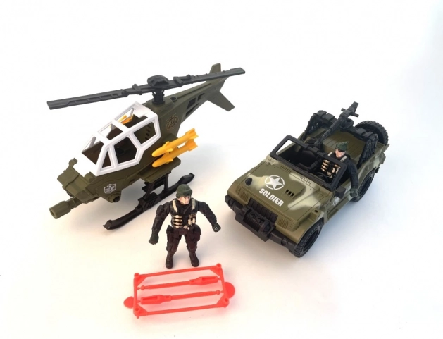 Vojenská sada vozidla a helikoptéry je ideálnou voľbou pre deti, ktoré rady skúmajú vojenské prostredie. Táto sada zahŕňa vozidlo, ktoré je pripravené na akciu v teréne, a helikoptéru, ktorá vás rýchlo dostane tam, kam je treba. Dve figúrky vojakov oživia vašu hru skutočným vojenským nasadením.