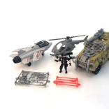 Veľká vojenská sada s bojovým vozidlom, helikoptérou a stíhačkou je ideálna pre všetkých malých fanúšikov armádnej techniky a akčných scén!