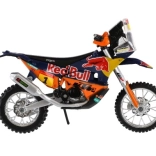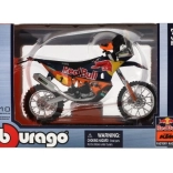 Model pretekárskej motorky BBURAGO v mierke 1:18 verne zobrazuje dizajn RED BULL KTM z Rally Dakar 2019 – vrátane výrazného oranžovo-modrého lakovania, log a pretekárskych prvkov. Vďaka kombinácii kovových a plastových dielov pôsobí robustne a zároveň si zachováva precízne spracovanie.