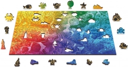 Zažite pestrý podmorský svet s motívom tropických rýb a zábavou, ktorá len tak neomrzí. Vďaka laserom vyrezávaným dielikom a desiatkam originálnych tvarov vás čaká chytľavá výzva. Puzzle je obojstranné – z líca skladáte farebný motív, z rubu opakujúci sa vzor podľa tvarov.