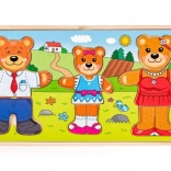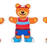 Rozvíjajte u detí koordináciu ruky a oka aj spoznávanie farieb s touto roztomilou skladačkou. Deti môžu medvedíkom skladať tváričky, tričká aj nohavice a vytvárať nespočetné zábavné kombinácie.