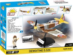 Postavte si verne spracované lietadlo Dewoitine D.520 v mierke 1:32 od COBI z 335 dielikov. Model ponúka pohyblivé prvky (vrtuľa, krídelká, otváracia kabína, sklopný podvozok), 100 % potlače bez nálepiek, figúrku pilota a stojan s menovkou. Vyrobené v EÚ a kompatibilné s inými značkami stavebníc.