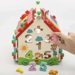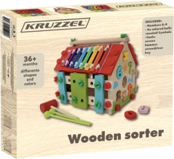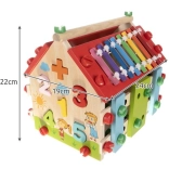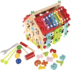Drevený domček pre deti je multifunkčná a edukatívna hračka navrhnutá na rozvoj motorických a kognitívnych schopností detí. Obsahuje rôzne aktivity, vrátane xylofónu a vkladania tvarov, ktoré zaručujú skvelú zábavu.