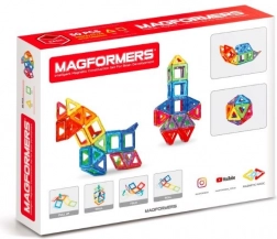 MAGFORMERY SET 50 sú bloky so zabudovanými silnými neodýmovými magnetmi, ktoré sa vždy navzájom priťahujú. Stačí priblížiť steny dvoch blokov k sebe a tie sa okamžite spoja. Vďaka blokom vymodelovaným podľa geometrických tvarov môžete stavať nádherné trojrozmerné stavby. Na hru môžete použiť priložený návod alebo ďalšie príklady na stránkach magformersworld.com alebo vlastnú fantáziu. Sada obsahuje: 26 trojuholníkov a 24 štvorcov.