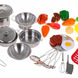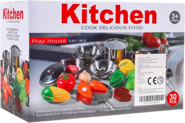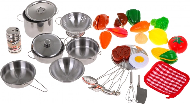 Objavte detský kuchynský set, ktorý zahŕňa rôzne nerezové riady a plastové potravinové napodobeniny. Je ideálny na simuláciu skutočného varenia a pomáha deťom rozvíjať kreativitu a hranie rolí. Tento set je skvelým doplnkom k obľúbeným hrám na obchod, kuchyňu alebo domácnosť.