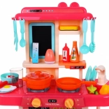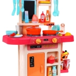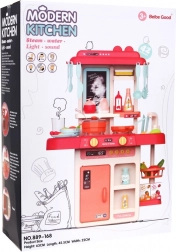 Detská kuchynka Modern Kitchen prináša deťom možnosť prežiť skutočný kuchynský zážitok s reálnymi svetlami a zvukmi. Obsahuje pohyblivé prvky ako otočné gombíky a otváraciu chladničku. Malí kuchári ocenia aj funkciu vydávania pary a ukazovateľ záznamov na zapisovači.