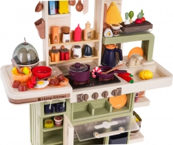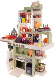 Veľká interaktívna detská kuchynka je ideálnou hračkou pre malých kuchárov od 3 rokov. Je vyrobená z kvalitných, netoxických materiálov, ktoré sú pre deti bezpečné. Kuchynka je vybavená svetelnými a zvukovými efektami, kulinárskymi oknami a na odkvape svieti červené svetlo pri "varení". Efektom je aj bezpečná para vydávajúca sa z hrnca.