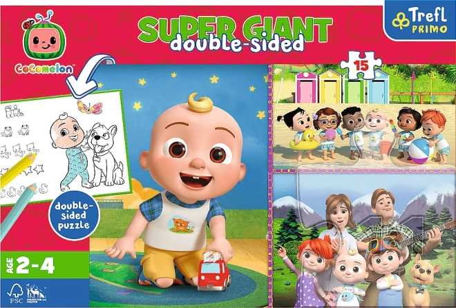 Puzzle Cocomelon - Veselý deň s priateľmi sú veľké puzzle zložené z 15 dielikov, ktoré podporujú rozvoj manuálnych zručností a vizuálneho vnímania detí. Motív je jednoduchý, farebný a zahŕňa veľké postavy pre ľahké skladanie.