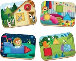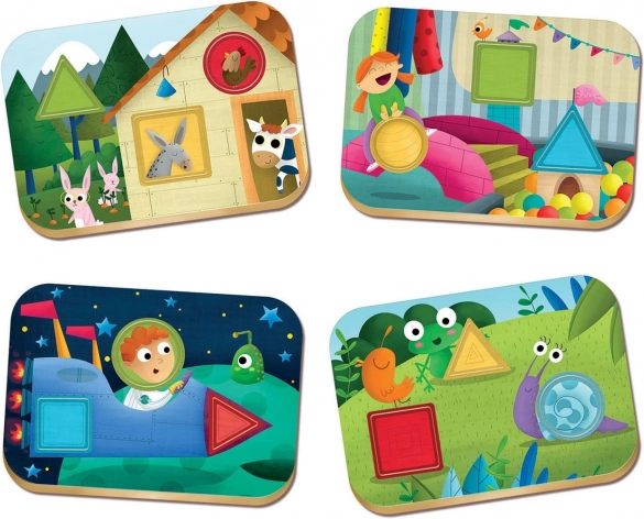 Táto hra podporuje detskú pozornosť, rozvíja ich predstavivosť a učí ich poznávať základné geometrické tvary a farby v rôznych prostrediach: na farme, v hernej miestnosti, na lúke a vo vesmíre.