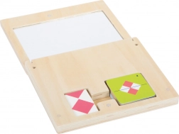 Táto fascinujúca hra ponúka deťom zábavný a interaktívny spôsob, ako sa naučiť rozpoznávať a tvoriť symetrické obrazce a tvary. Umiestnením drevených doštičiek pred zrkadlo vytvoria deti obrazce, ktoré spolu tvoria požadovaný vzor podľa priložených kariet.