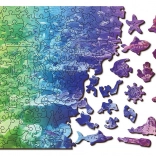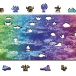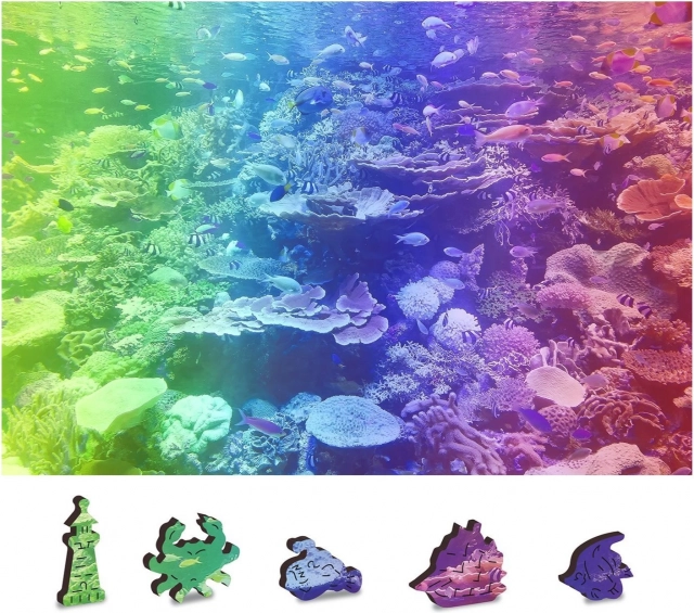 Drevené puzzle Korálový útes 2v1 prináša jedinečný zážitok zo skladania – z jednej strany skladáte podľa farebného motívu, z druhej podľa tvarov s opakujúcim sa vzorom. Časť dielikov má originálne tvary zvierat, predmetov či stavieb a vďaka laserom zvýrazneným detailom pôsobia ako malé samostatné figúrky.