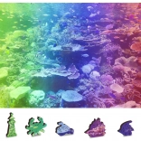 Vybrané dieliky majú tvary morských zvierat a predmetov. Laserové zvýraznenie dodáva figúrkam charakter a zvyšuje pôžitok zo skladania.