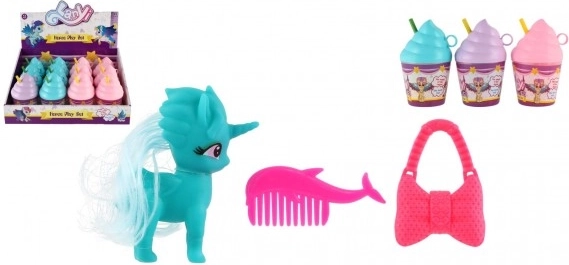 Jednorožec česací plast s doplnkami v hrnčeku zmrzlinka 2 farby 8x12 cm