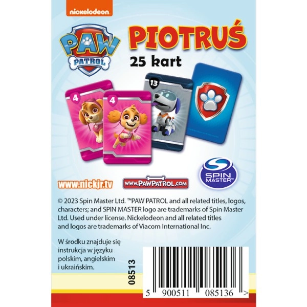 Kartová hra Piotruś s motívom PAW PATROL od značky Trefl prináša rýchlu a zábavnú hru pre deti od 4 rokov. Jednoduché pravidlá, obľúbené postavičky a rozvoj pozornosti a koncentrácie robia z tejto hry skvelú voľbu na rodinné chvíle aj cestovanie.