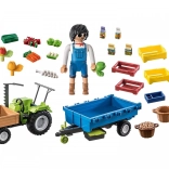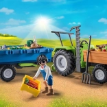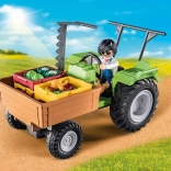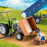 Zábavná sada PLAYMOBIL pre malých farmárov: traktor s prívesom preváža čerstvo zozbierané plodiny do obchodu. Vďaka výklopnej ložnej ploche, veľkým kolesám a realistickým detailom ponúka množstvo tvorivej hry. Obsahuje 42 dielikov, vhodná pre deti 4–10 rokov.