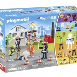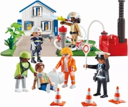 Playmobil Moje Figúrky je ideálnym doplnkom každého modelu policajnej stanice, hasičskej stanice alebo iného mestského scenára. S pomocou týchto figúrok možno zahrať rôzne príbehy - od vymyslených požiarov po bankové lúpeže. Tento set prináša na scénu policajtov, hasičov a záchranárov, ktorí v každej nebezpečnej situácii zachránia mesto.