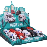 Kompaktné záchranné auto na zotrvačník s dĺžkou 12 cm nadchne malých fanúšikov akcie a záchranných zložiek. Ponúka otváracie predné aj zadné dvere, pohyb na zotrvačník a štyri realistické varianty – HASIČI, ZÁCHRANKA, POLÍCIA biela a POLÍCIA čierna.