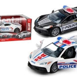 Kovové policajné auto vo veľkosti 12 cm je ideálne pre malých fanúšikov rýchlych áut a napínavých naháňačiek. Auto je vybavené funkciou spätného natiahnutia a otváracími dverami.