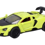 S týmto kvalitným kovovým autom Supersport vaše deti zažijú nekonečnú zábavu. Vďaka spätnému natiahnutiu auto ľahko ide vpred. Otvárateľné dvere a okno pridávajú na interaktivite a skutočnosti, čo robí hru zábavnou a edukatívnou. S dvoma farebnými variantmi - zelenou a oranžovou - si vaše dieťa môže vybrať podľa svojej obľúbenej farby.