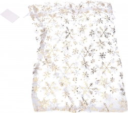 Elegantné vianočné vrecko z organzy s dizajnom vločiek je ideálne na balenie darčekov. Dostupné v zlatej a striebornej farbe.