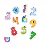 Každý magnet zobrazuje číslice a ich názov v angličtine, čo pomáha deťom osvojiť si slovnú zásobu rýchlo a efektívne.