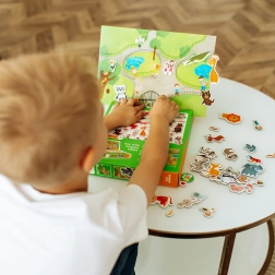 Táto magnetická hra je skvelým darčekom pre deti, ktoré chcú spoznávať zvieratá hravou formou. Vytvárajte scény zo zoo, pomenúvajte zvieratá a nechajte fantáziu pracovať.