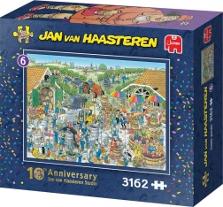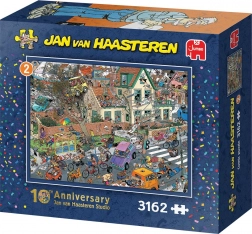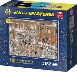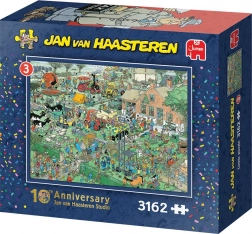 Oslávte 10 rokov štúdia JAN VAN HAASTEREN s unikátnym, zberateľským puzzle v luxusnej krabici s celkovým počtom 30 200 dielikov a pôsobivou dĺžkou 6 metrov. Desať samostatných puzzle po 3162 dielikoch vytvorí dohromady veľkoformátovú scénu plnú vtipných detailov a ikonických motívov, ktoré milujú fanúšikovia po celom svete. Súčasťou jubilejnej limitovanej edície je navyše 10 plagátov A3 s jednotlivými motívmi.