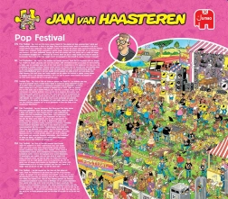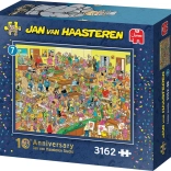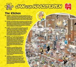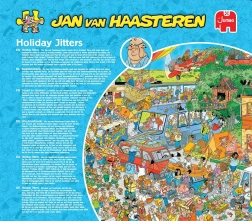 Vstúpte do sveta plného absurdného humoru a farebných scén s legendárnou sériou JAN VAN HAASTEREN. Každé z desiatich puzzle je samostatne balené a po zložení do seba dokonale zapadne do jedného veľkolepého obrazu s tisíckami drobných gagov. Hľadajte typické prvky ako žraločia plutva, túlajúce sa ruky, zubná protéza, Mikuláš aj autorov autoportrét.