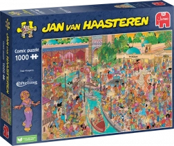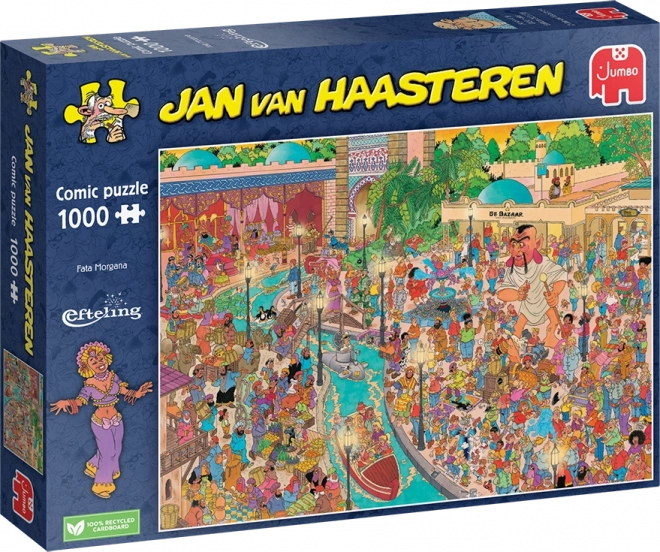 Užite si hodiny zábavy s kvalitnými puzzle JUMBO z edície Jana van Haasterena. Ilustrácia „Efteling Fata Morgana“ prináša typický humor, množstvo drobných scén a skryté motívy ako žraločia plutva, túlajúce sa ruky či Haasterenov portrét. Vďaka 1000 dielikom a farebnej, detailnej kresbe je skladanie pútavé pre celú rodinu.