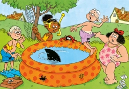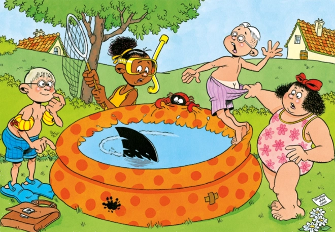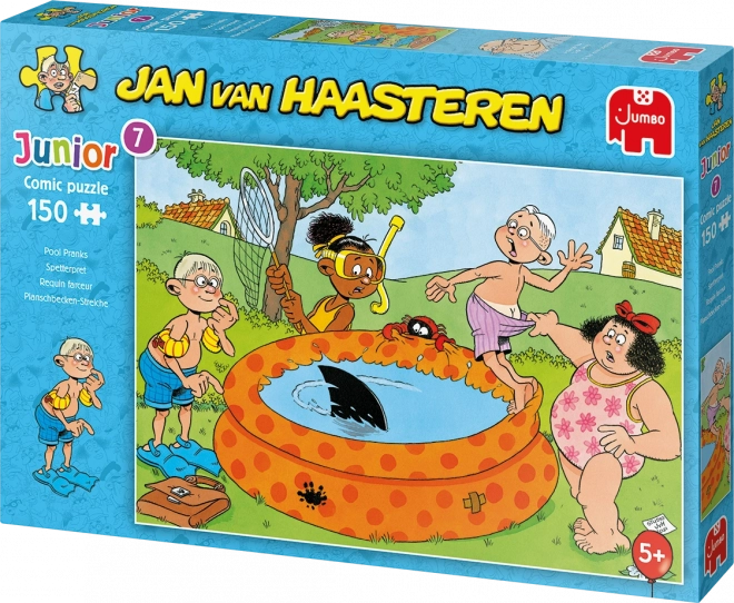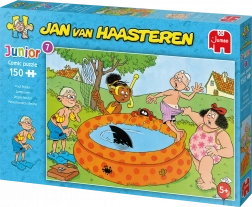 Ponorte sa do bláznivých scén z edície Junior – žartíky pri bazéne od legendárneho karikaturistu JAN VAN HAASTEREN. Typické signatúry ako žraločia plutva, nečakané ruky bez majiteľa, zubná protéza, Mikuláš aj autorov autoportrét premenia skladanie na pátracie dobrodružstvo plné smiechu.
