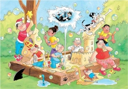 Legendárny ilustrátor Jan van Haasteren prináša deťom aj dospelým množstvo smiechu a objavovania. Scéna na pieskovisku je plná farebných drobností a skrytých vtipov – nájdete žraločiu plutvu, ruky bez tela, Mikuláša alebo dokonca autorov autoportrét? Každé zloženie ponúkne nový detail na odhalenie.