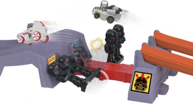 Zažite napínavé preteky vo svete HOT WHEELS RACERVERSE a STAR WARS. Spustite autá Grogu a Mandalorian z vrcholu trate, preleťte bránami ako svetelné meče a sledujte, kto prvý preskočí prekážku so stormtroopermi a prejde cieľom. Ideálny darček pre fanúšikov od 4 rokov.