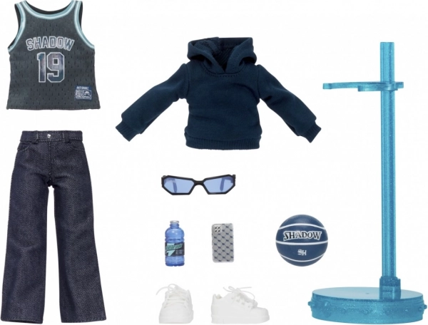 Obsahuje širokú škálu módnych doplnkov, ktoré zahŕňajú košeľu 'Shadow 19', mikinu, džínsy, tenisky a basketbalovú loptu. Doplnky podporujú hernú zábavu a rozširujú možnosti stylingu.