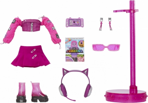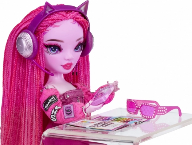 Súčasťou bábiky sú rôzne módne doplnky vrátane ružových slnečných okuliarov, slúchadiel s ušami a ružového stojana, ktoré podporujú kreatívne hranie a umožňujú vytvárať unikátne módne vzhľady.