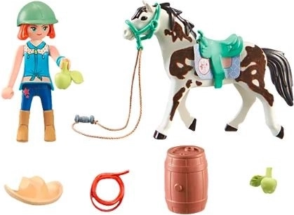 - Roztomilo navrhnutý set obsahuje figúrku PLAYMOBIL Ellie, koňa Sawdust, sedlo, uzdu, laso a mnoho ďalších doplnkov pre westernové jazdenie a starostlivosť o kone.