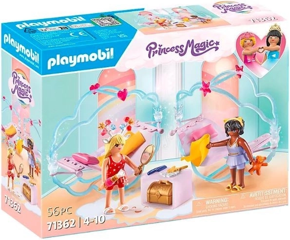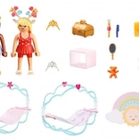 Užite si dobrodružstvo s dúhovými princeznami na nebeskom pyžamovom večierku PLAYMOBIL. Predtým ako sa dve dúhové princezné uložia do magických hojdacích postelí, zdobia ich trblietavými šperkami, potom cestujú do sveta snov a predstáv s rozprávkovými postavami a magickým okolím.