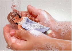 Figúrka, štyri parochne, rôzne oblečenie, kozmetický kútik, fixky