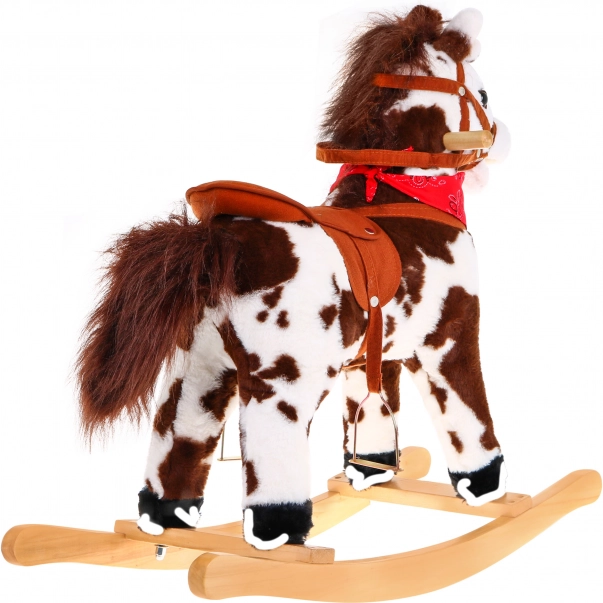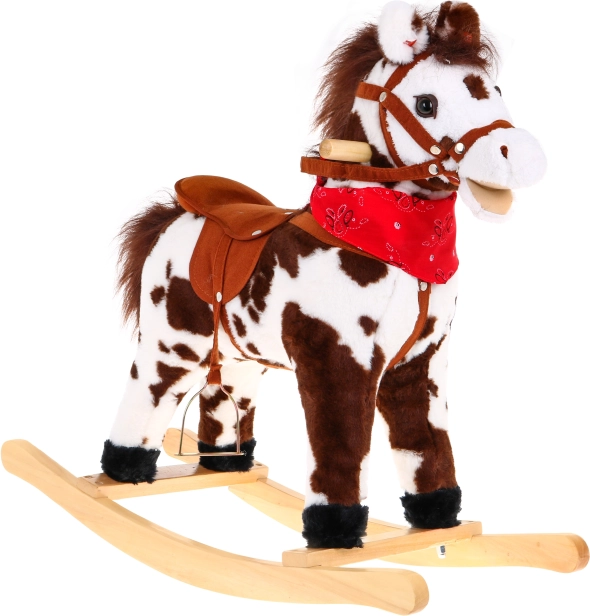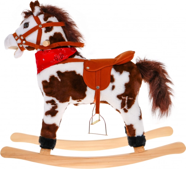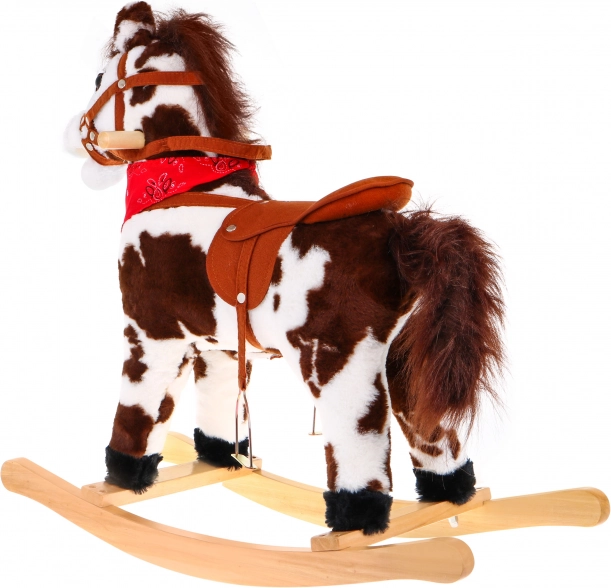 Tento štýlový hojdací koník v realistickom hnedo-bielom prevedení je ideálny spoločník pre malých jazdcov. Stabilná drevená konštrukcia v kombinácii s mäkkým plyšovým poťahom zaisťuje pohodlie aj bezpečie. Vďaka dreveným úchytom a pevným strmeňom deti ľahko nasadnú a užijú si plynulý hojdavý pohyb.