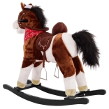 Tento štýlový hojdací kôň v tmavohnedom prevedení kombinuje klasický vzhľad s modernými interaktívnymi funkciami. Mäkký plyš je príjemný na dotyk, zatiaľ čo drevená hojdacia základňa zaisťuje stabilitu a plynulý pohyb. Vďaka sedlu so strmeňmi a oťažiam majú deti istejší posed a viac zábavy.