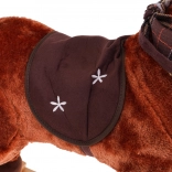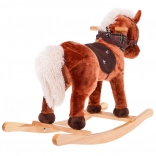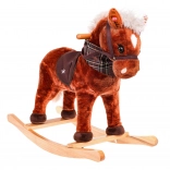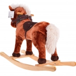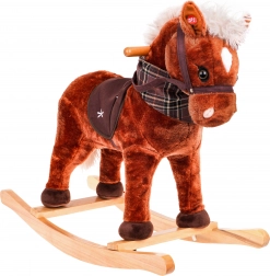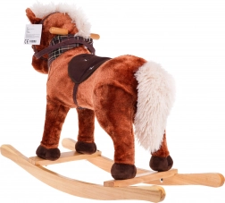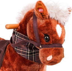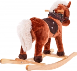 Tento kvalitný hojdací koník v hnedom prevedení poteší každého malého milovníka koní. Vďaka stabilným dreveným lyžinám a pevným rukovätiam je jazda bezpečná a pohodlná, mäkký plyš príjemne hreje a láka k pohladeniu. Integrované zvuky erdžania a klusu podporia fantáziu a premenia hru na dobrodružstvo.