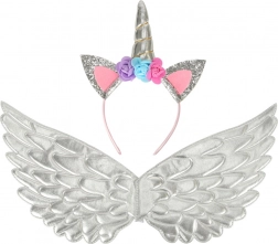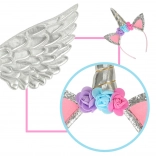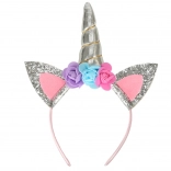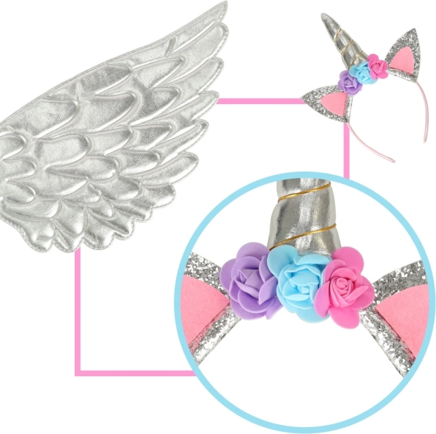 Táto čelenka premení každé dieťa na magického jednorožca vďaka elegantnému striebornému rohu a dekoratívnym kvetom.