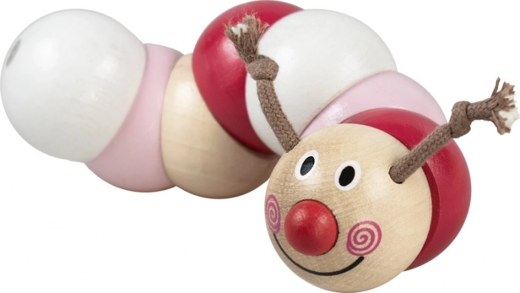 Detoa Ružová Húsenica Tea je interaktívna, farebná hračka z drevených tvarov navlečených na gumičke, ktorá sa pohybuje, točí a ohýba. Ideálna pre rozvoj jemnej motoriky detí od 6 mesiacov.