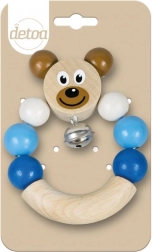 Drevená hrkálka s medvedíkom v modrej farbe. Ľahko uchopiteľná, rolnička jemne cinká. Hrkálka má nízku hmotnosť a je vhodná pre deti od 6 mesiacov. V EKO prírodnom balení.