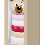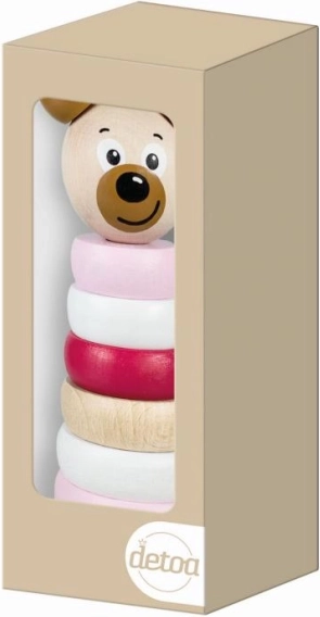 Drevená pyramída s medvedou hlavou v pastelových farbách je viac než len hračka — je to nástroj pre rozvoj detí. Je vyrobená z masívneho dreva, čo zaručuje jej odolnosť a dlhú trvácnosť. Skladá sa z ôsmich dielov, ktoré deti učia poznávať farby a tvary. Má ergonomický dizajn s kruhovými tvarmi a zaoblenými hranami, je prispôsobená pre malé detské ruky a stimuluje hmat.